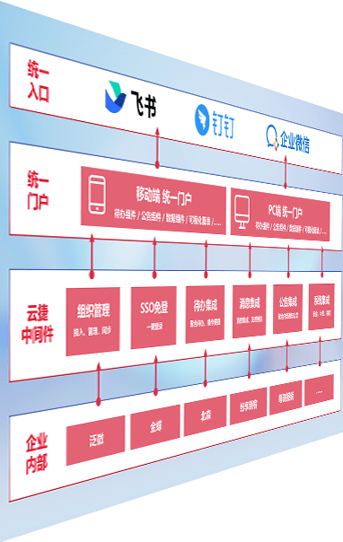 对协作平台提供支持服务,,,支持企业应用与协作平台对接,,包含组织同步、、、消息集成、、、待办集成等。。支持目前主流的协作平台:钉钉、、、企微和飞书。。。。