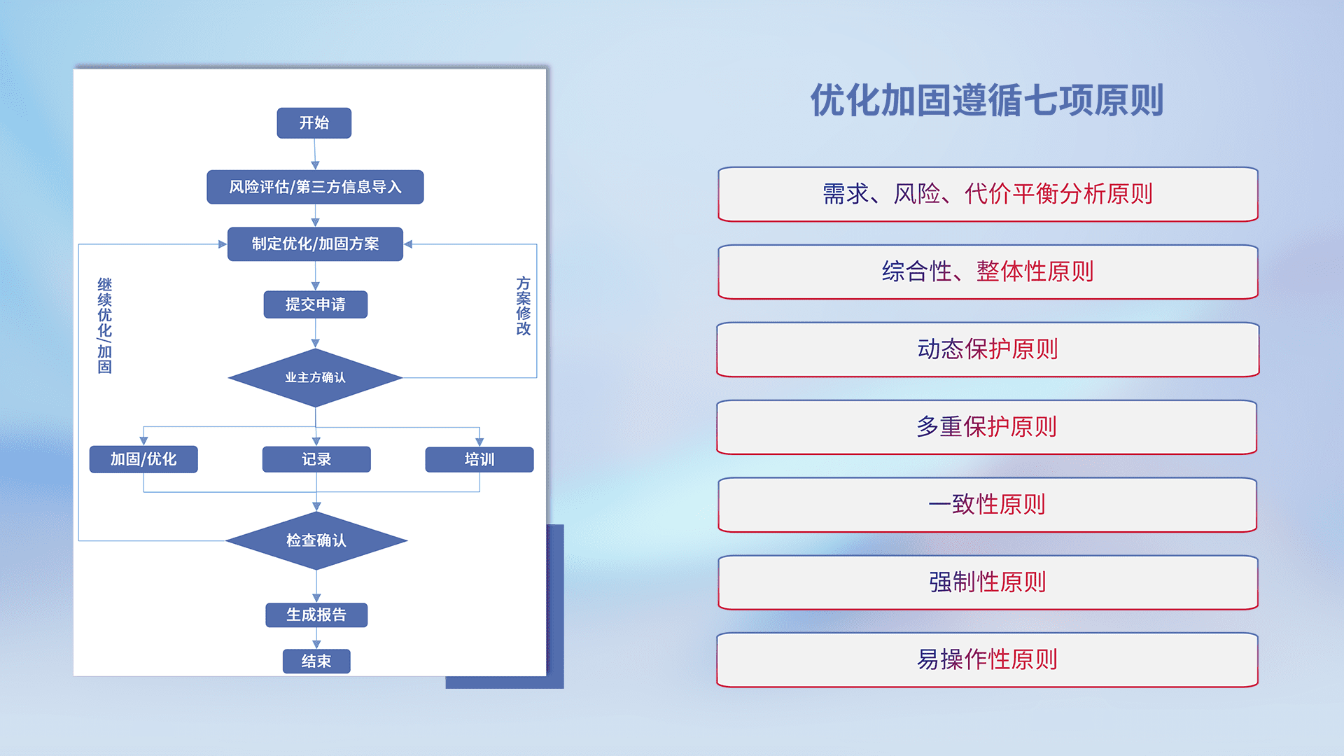 最大程度利用现有资产,,,,对评估发现的问题进行封堵与整改,,,防止漏洞被利用,,,,提升整体网络安全性,,,,为客户带来高标准的优化加固服务。。。。