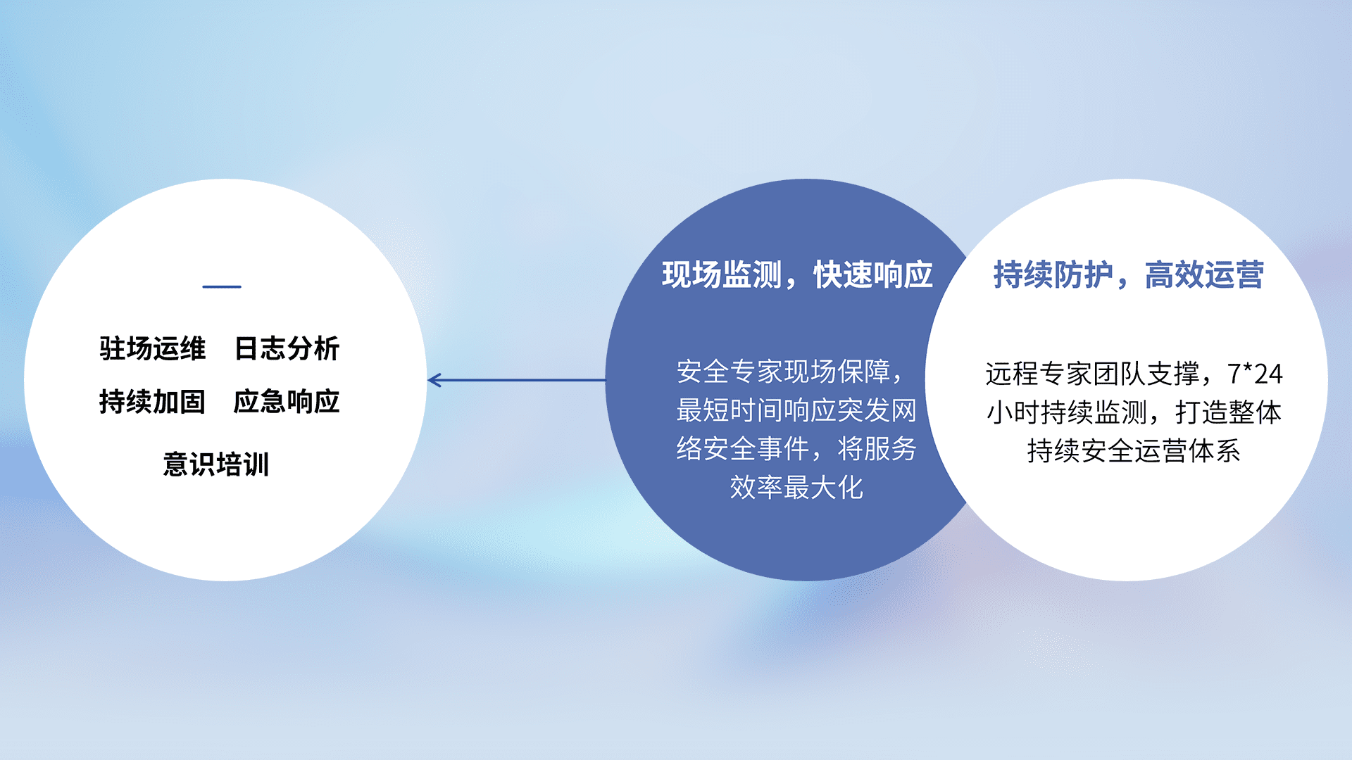 针对客户行业特性,,提供专属的一站式安全管理服务,,,帮助客户全面感知网络空间威胁,,,通过安全专家的线上、、线下防护支持,,实现风险闭环,,将安全保障常态化,,为客户打造常态化安全运维运营服务。。
